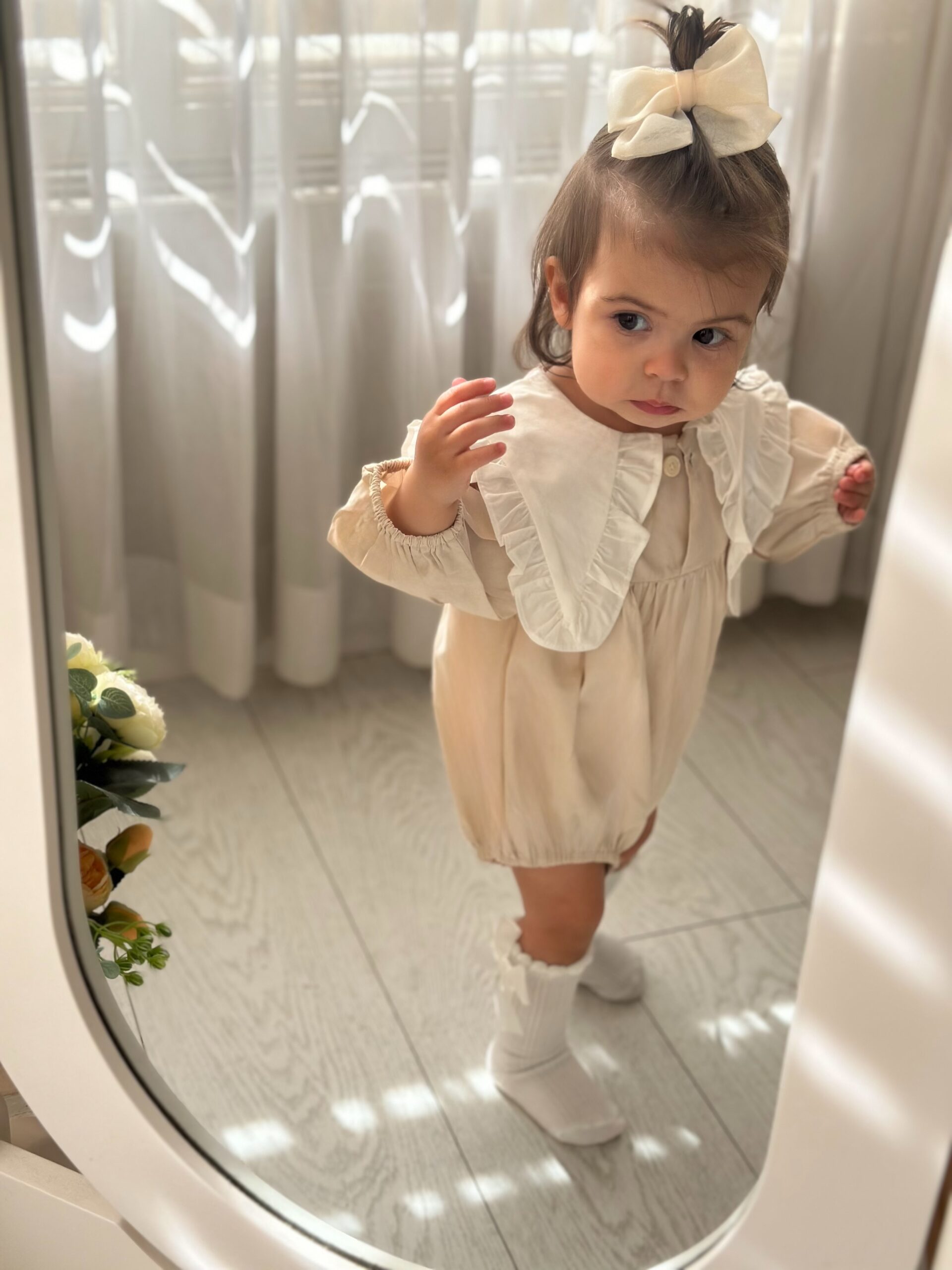 בודי כותנה עם סגירת תיקתק וצווארון לבן קלאסי – שילוב מושלם של נוחות וסטייל.