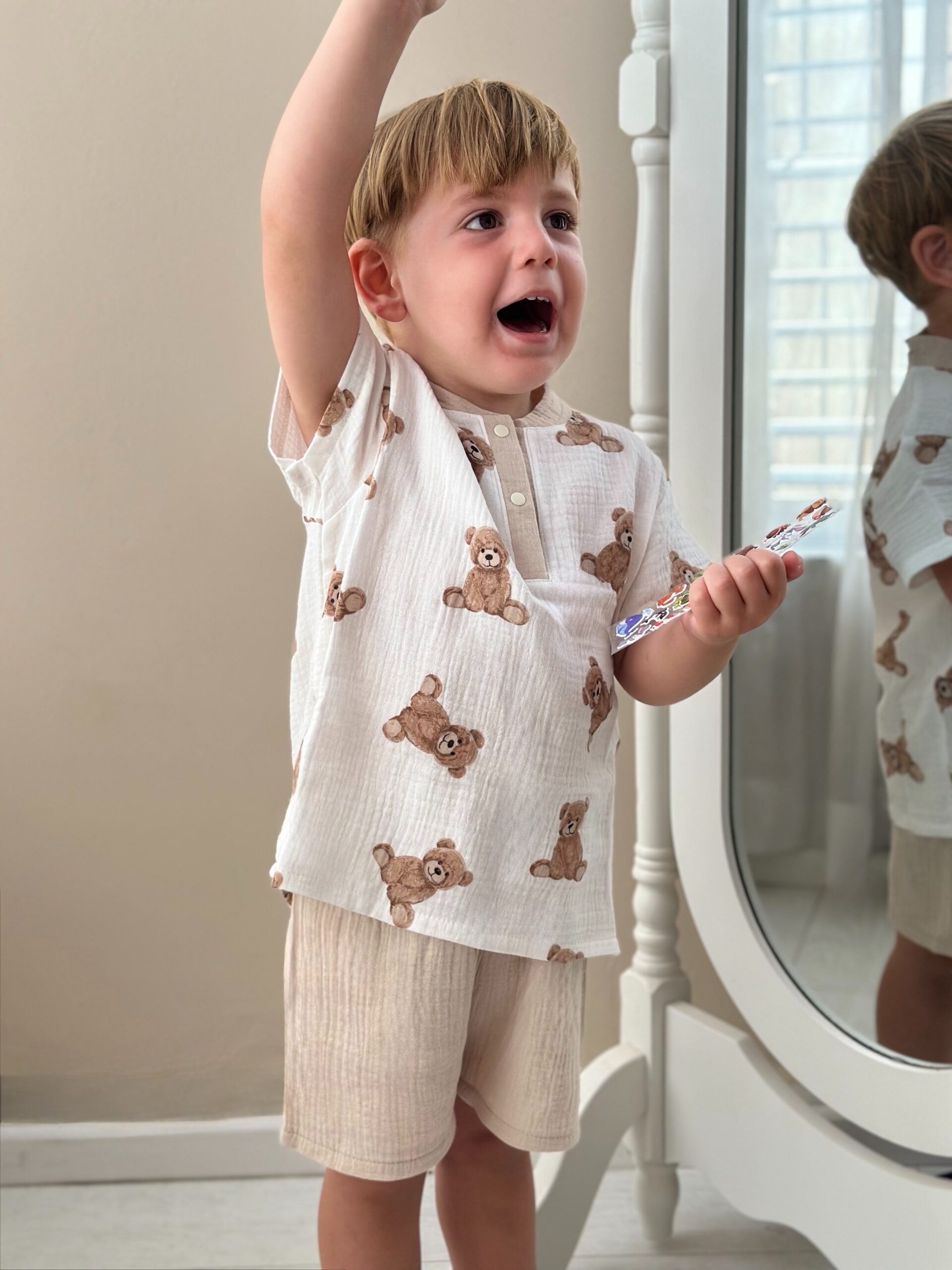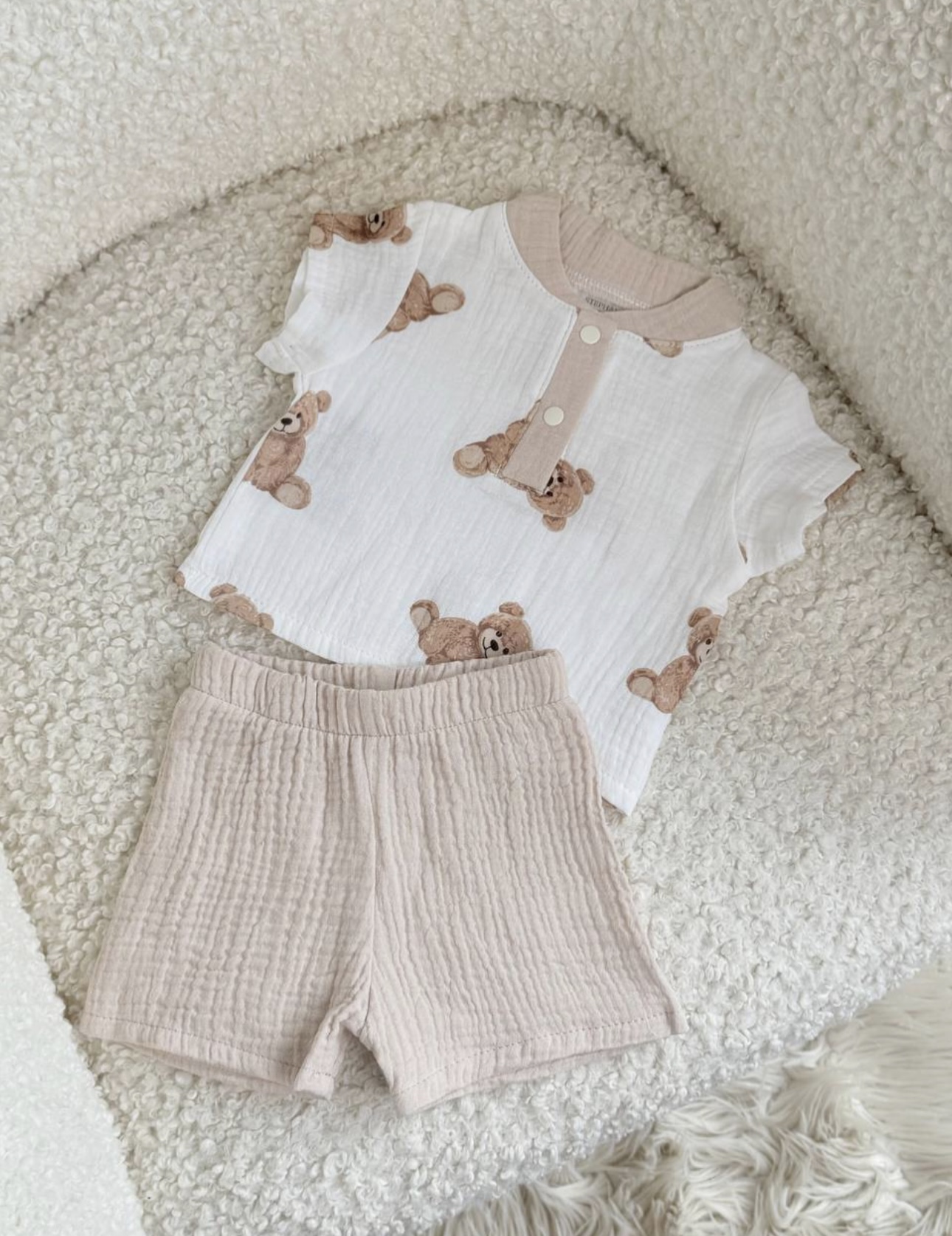 חליפה קלילה מבד מוסלין הכי מתאים לקטנטנים שלנו🌿