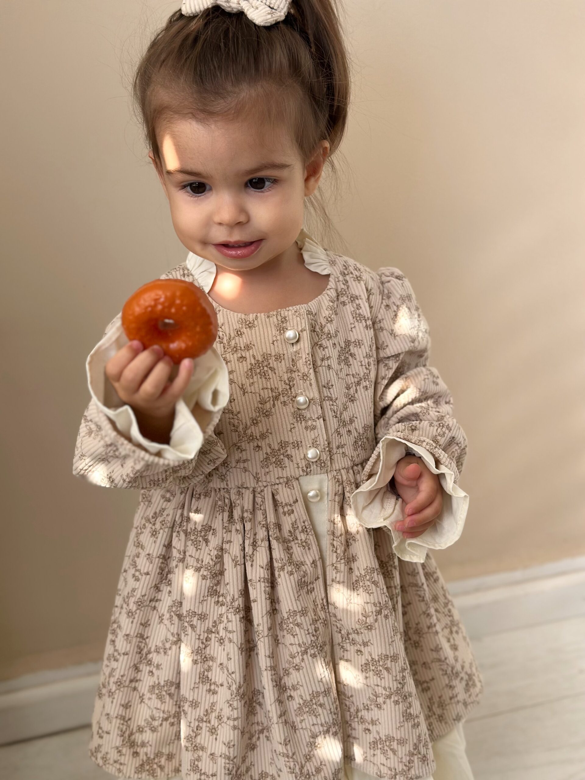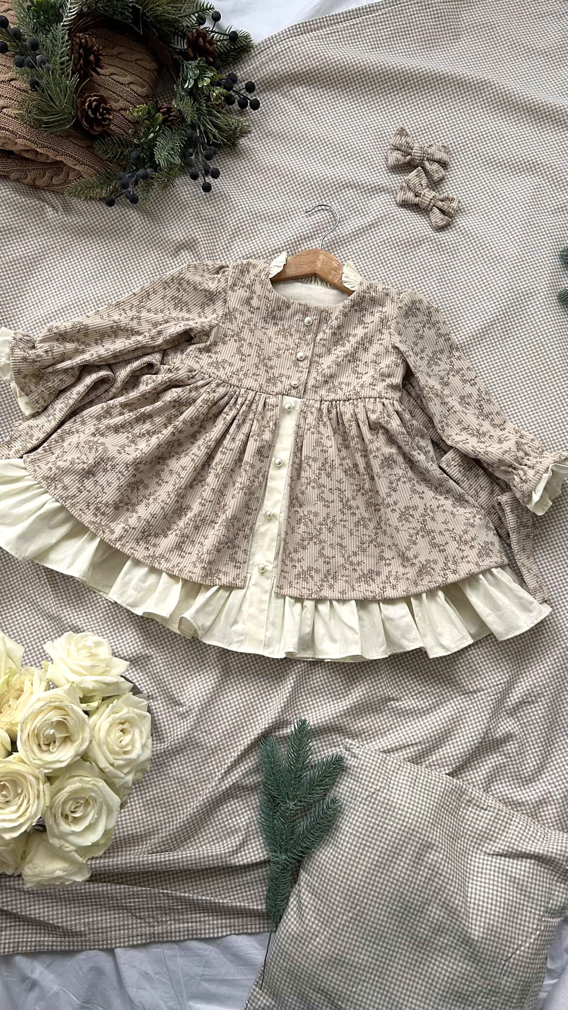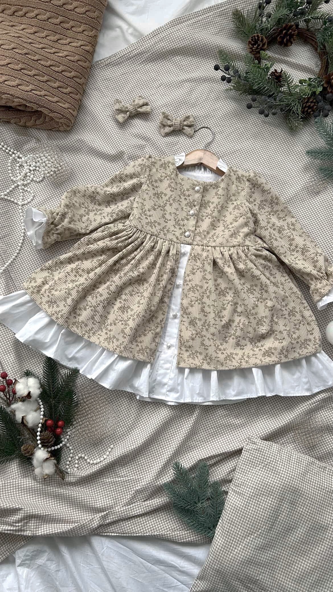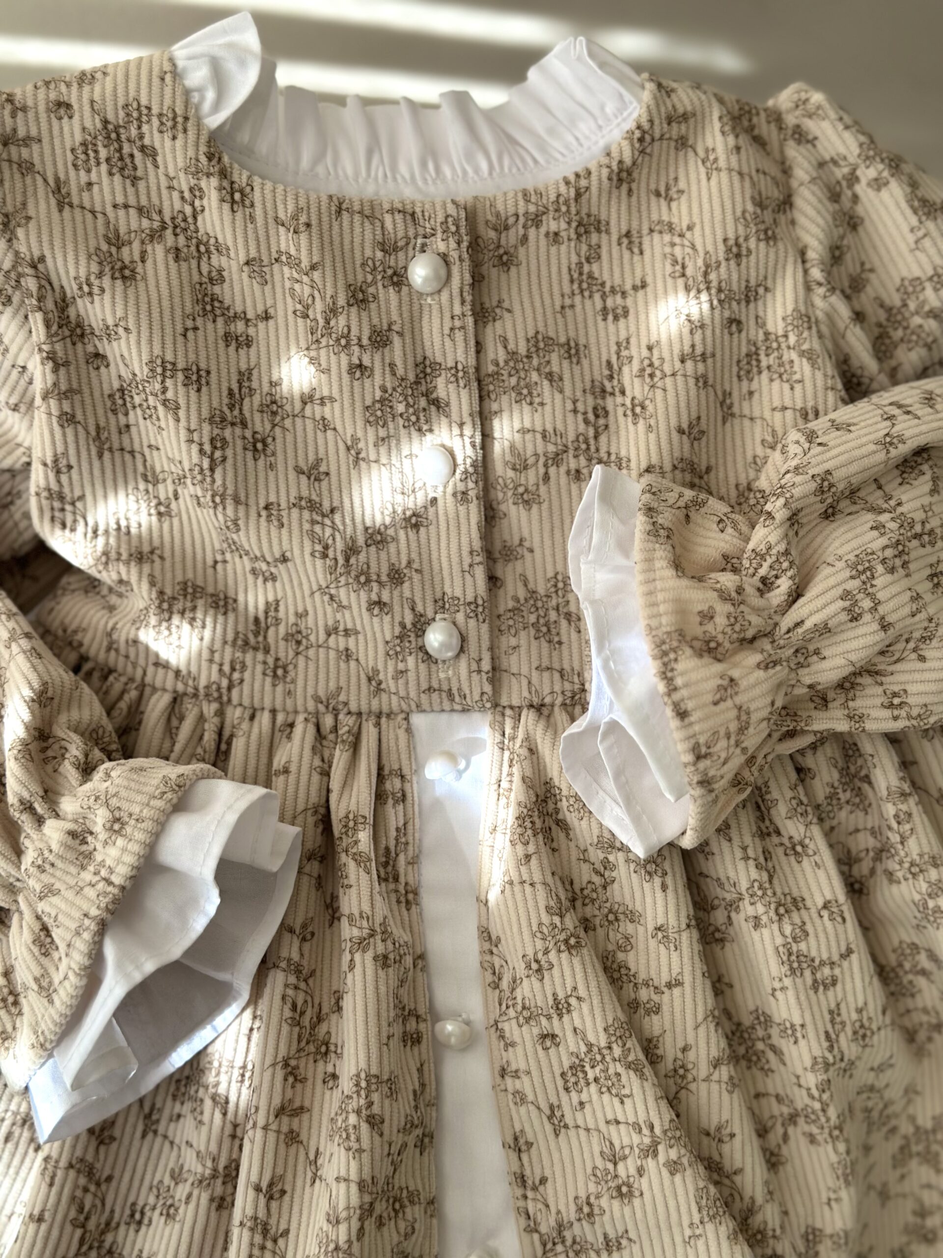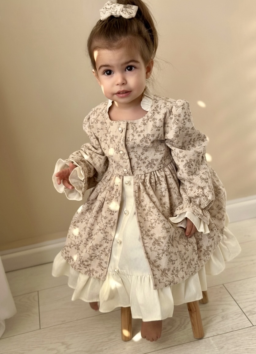 השמלה עשויה מ־מיקרו־וולווט כותנה — בד רך וחמים, נעים למגע ומתאים במיוחד לילדים.