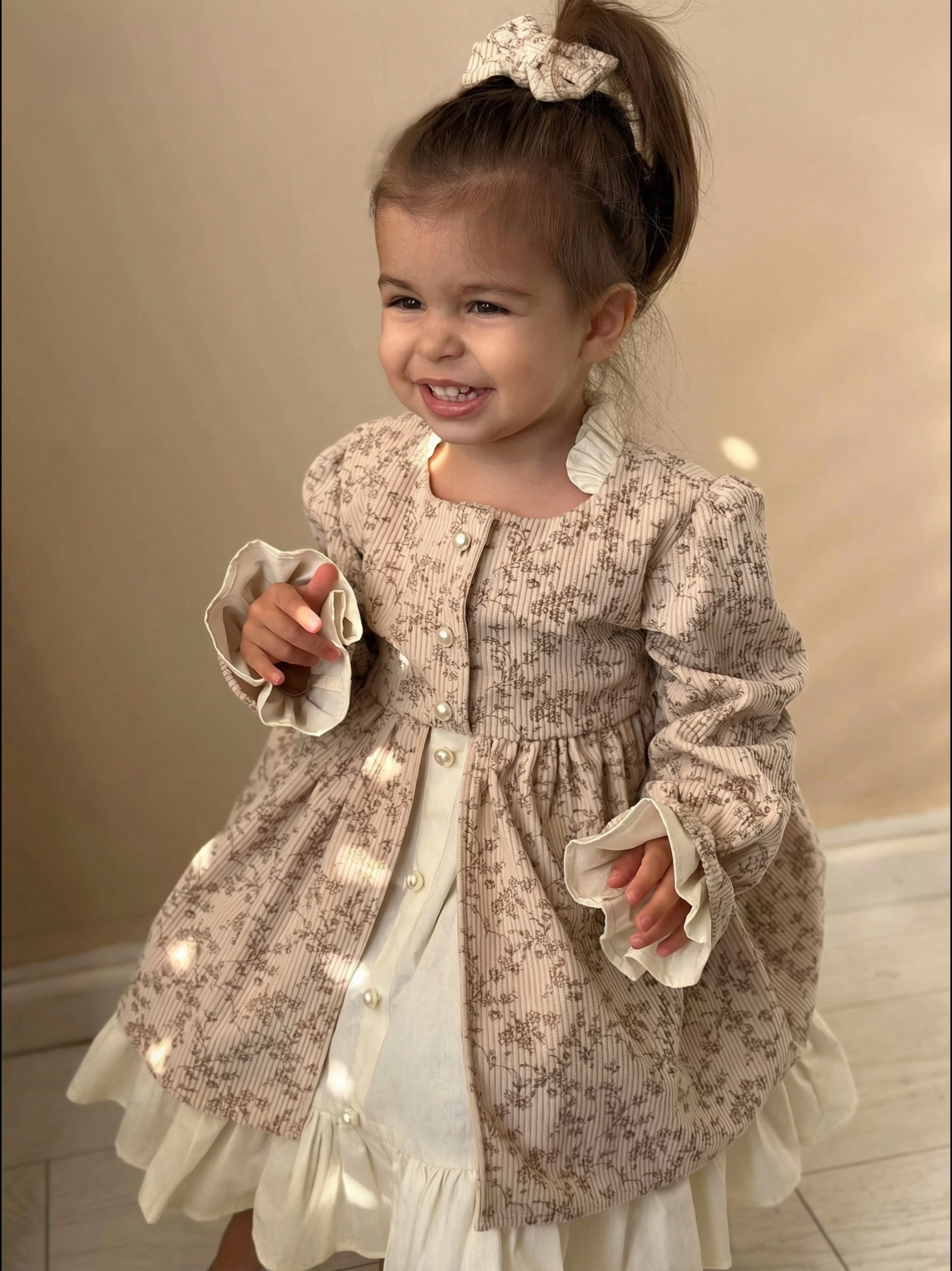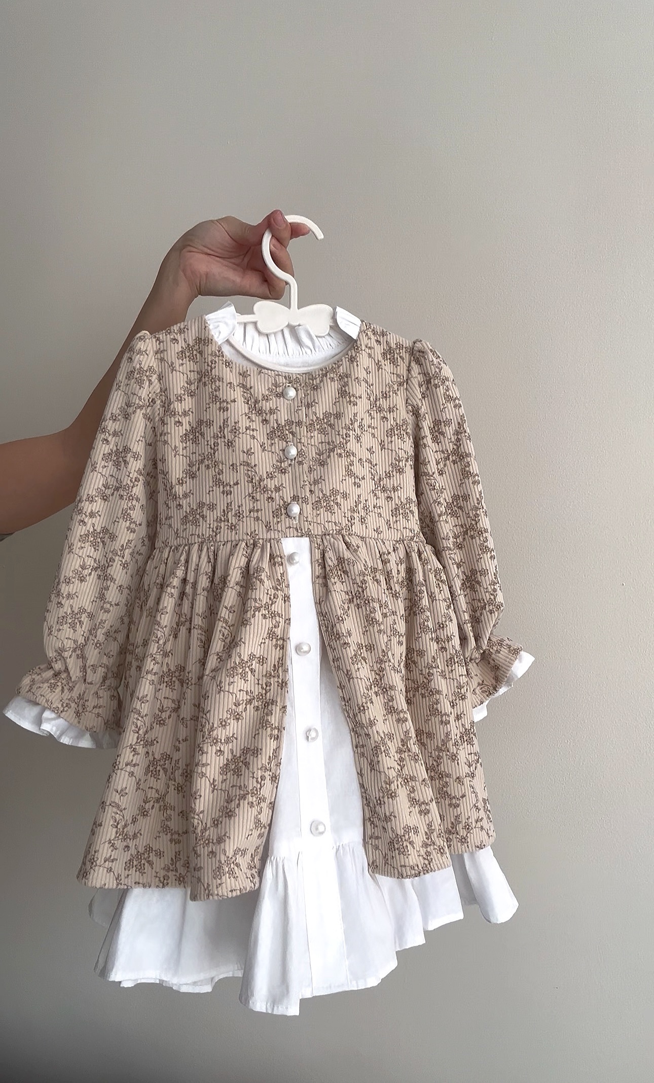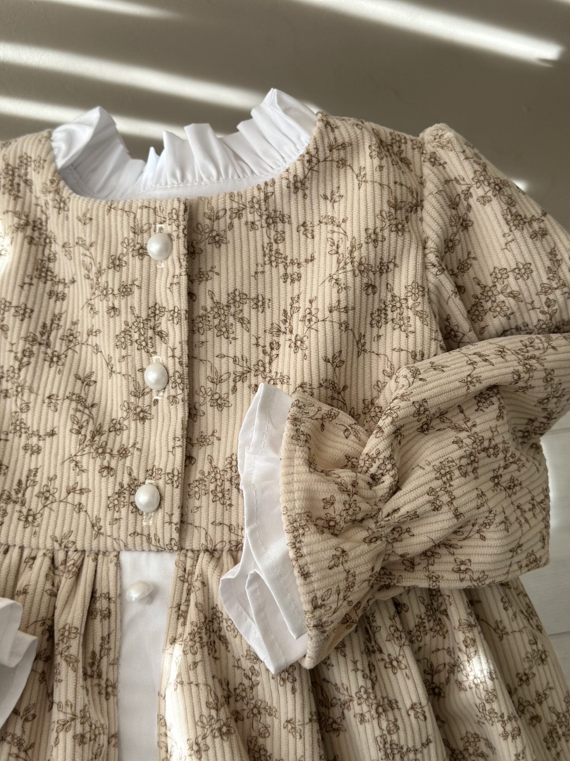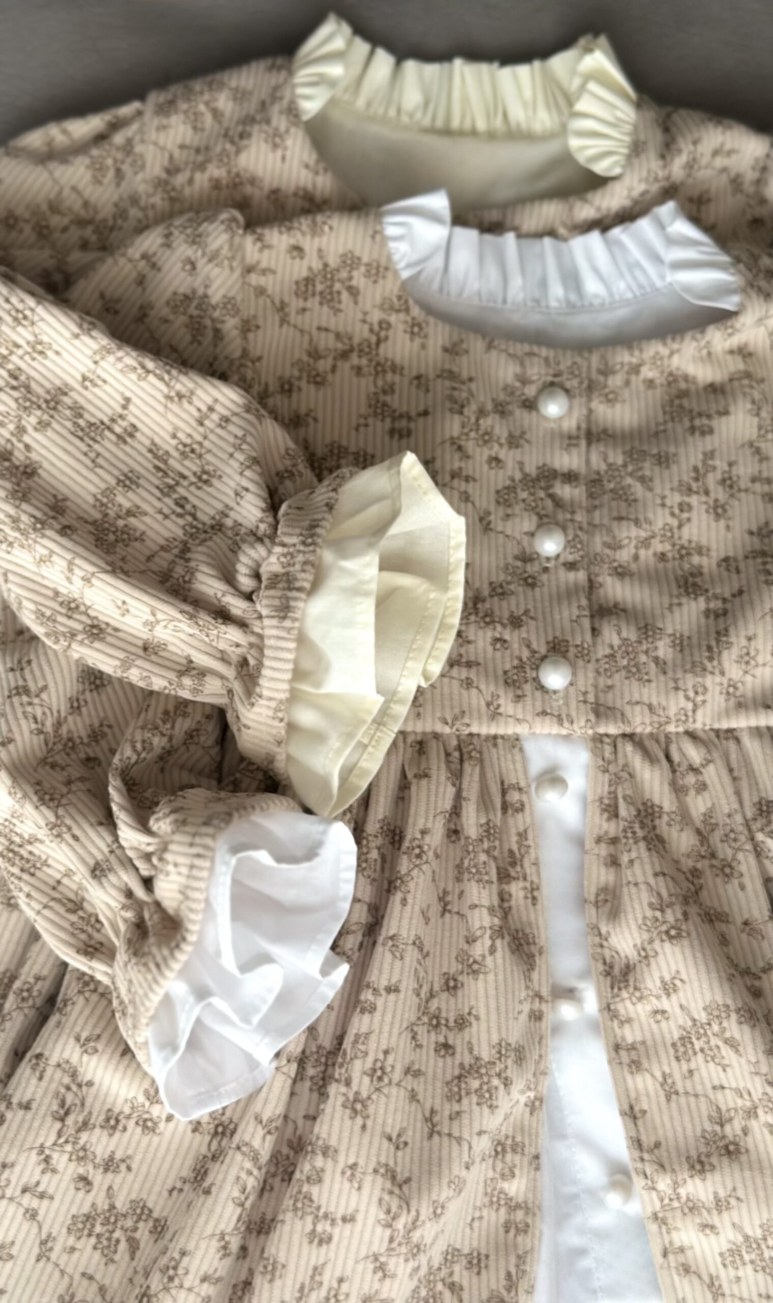 השמלה עשויה מ־מיקרו־וולווט כותנה — בד רך וחמים, נעים למגע ומתאים במיוחד לילדים.
