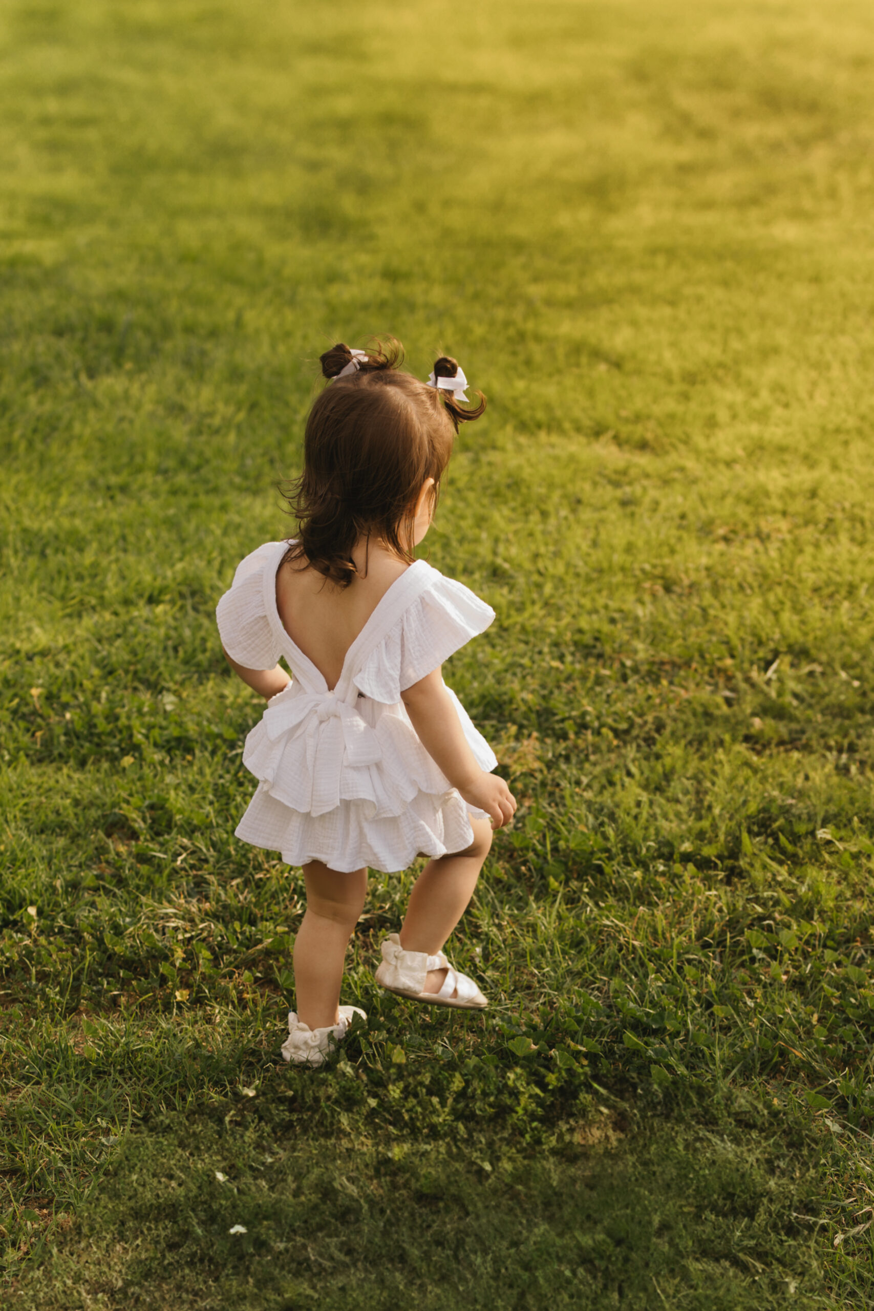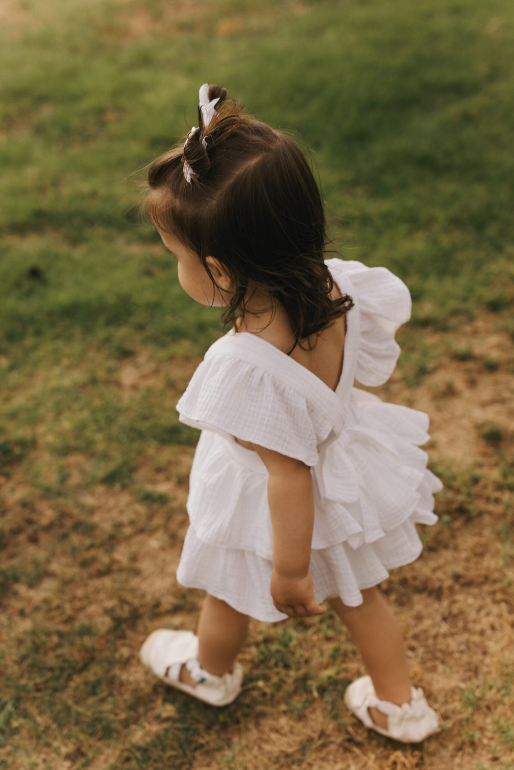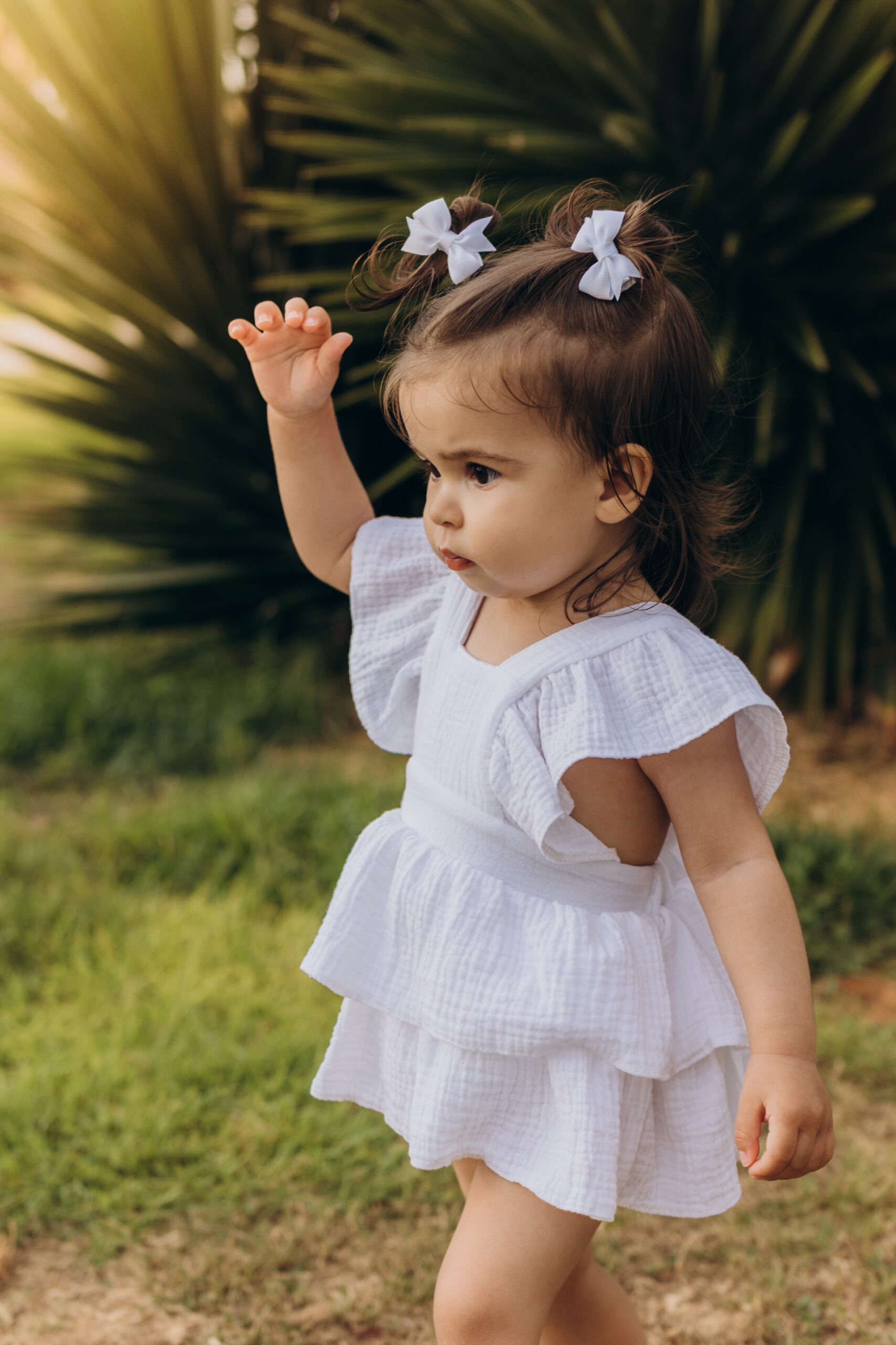 שמלת מוסלין לבנה עם מראה נקי וטהור. לוק מלא רוך ושיק קייצי מושלם.